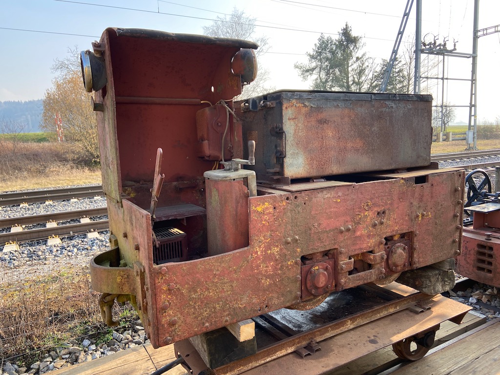 Anfangs diese Jahres holten wir unsere DDR Akkulok Metalist aus dem Exil in Buchs zurück. Diese kam vor einigen Jahren dorthin, weil die Achsen blockiert waren. Deswegen stellten wir sie auch zuerst auf einen Flachwagen. Dort wurde sie dann auch gleich untersucht und erhaltende Massnahmen ergriffen. Zuerst mussten wir diversen Schmutz entfernen und einige tierische Spuren entfernen. Danach ging es an das eigentliche Problem: Die Achsen.
